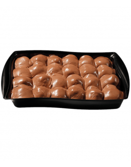 Celé lieskové orechy zaliate do mliečnej čokolády.